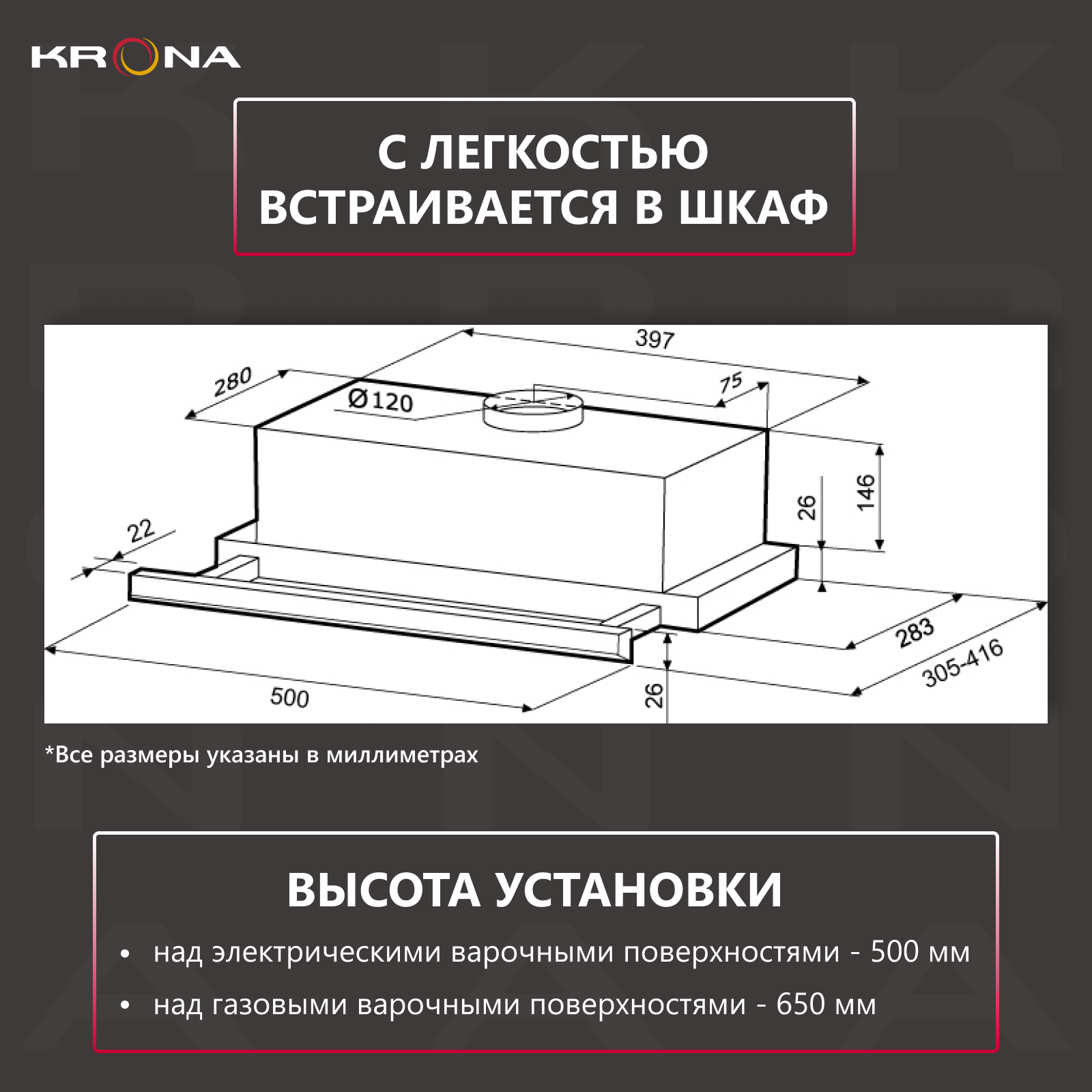вытяжка встраиваемая Krona Kamilla 500 slim
