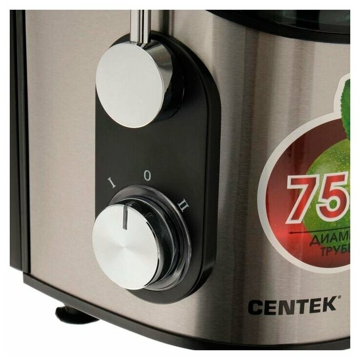 Соковыжималка Centek CT-1212 (черный, сталь) 1200Вт, 2 скор., стакан 1100 мл, горловина 75мм