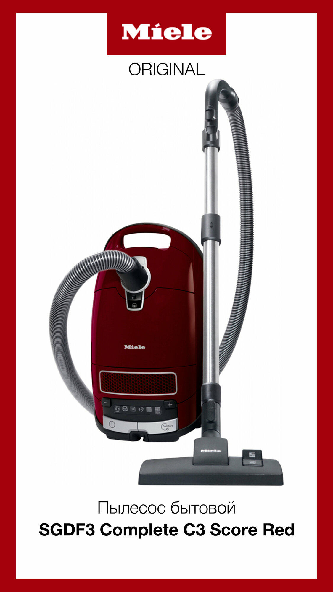 Пылесос Miele с максимальной мощностью всасывания и управлением кнопками, мощный и надежный SGDA3 Complete C3 Score Red ежевичный красный 41GDA344RU