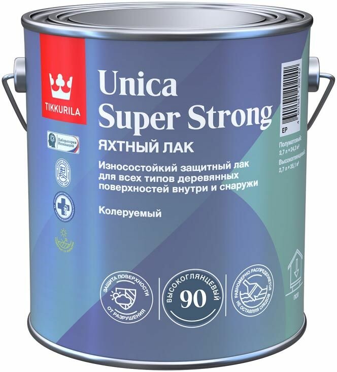 Тиккурила Уника Супер Стронг ЕР лак глянцевый (2,7л) / TIKKURILA Unica Super Strong EP лак яхтный по дереву глянцевый (2,7л)