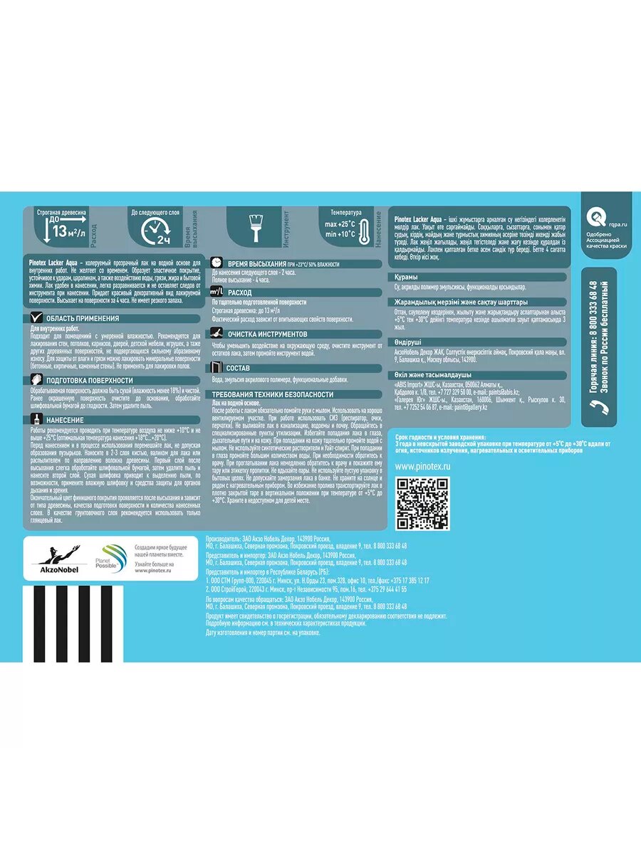 PINOTEX LACKER AQUA 10 лак на водной основе для мебели и стен, для внутр. работ, матовый (9л)