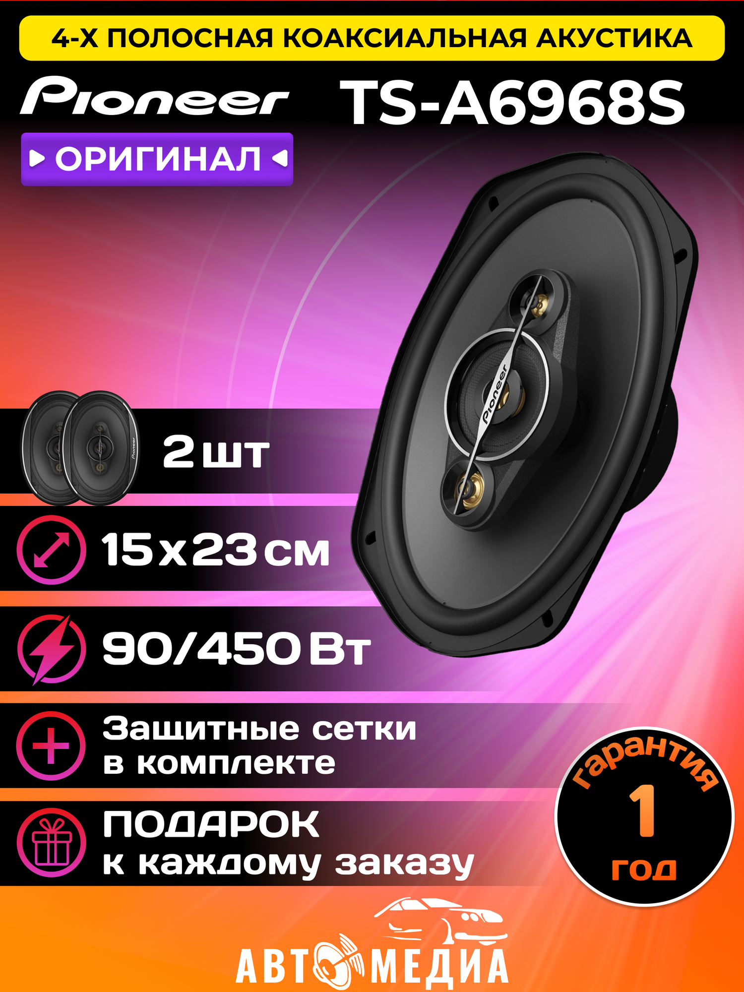 Колонки автомобильные Pioneer Ts-a6968s 450Вт 92дБ 4Ом 15x23см (6x9дюйм) (ком.:2кол.) коаксиальные ч