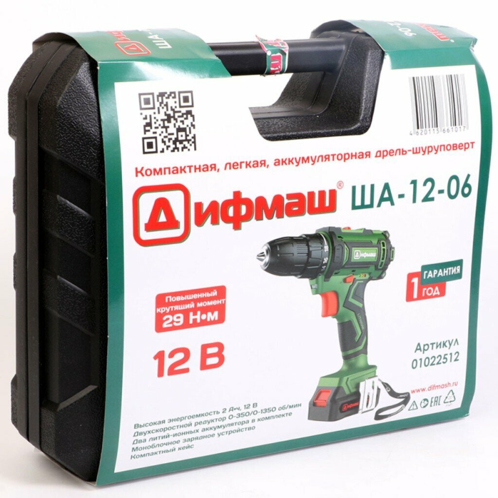 Дрель-шуруповерт дифмаш ША-12-06, кейс