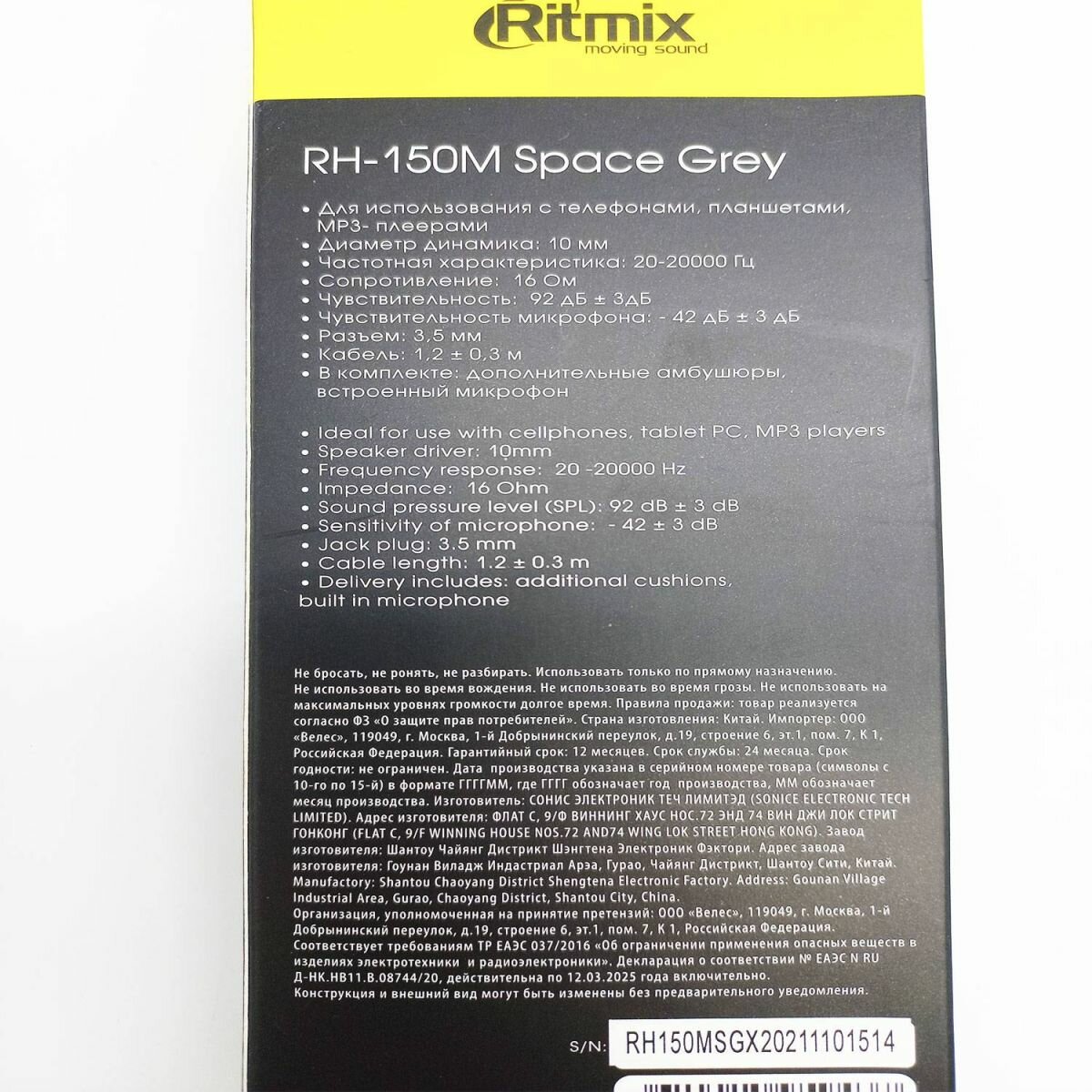 RITMIX - RH-150M Гарнитура RH-150MSpacegrey