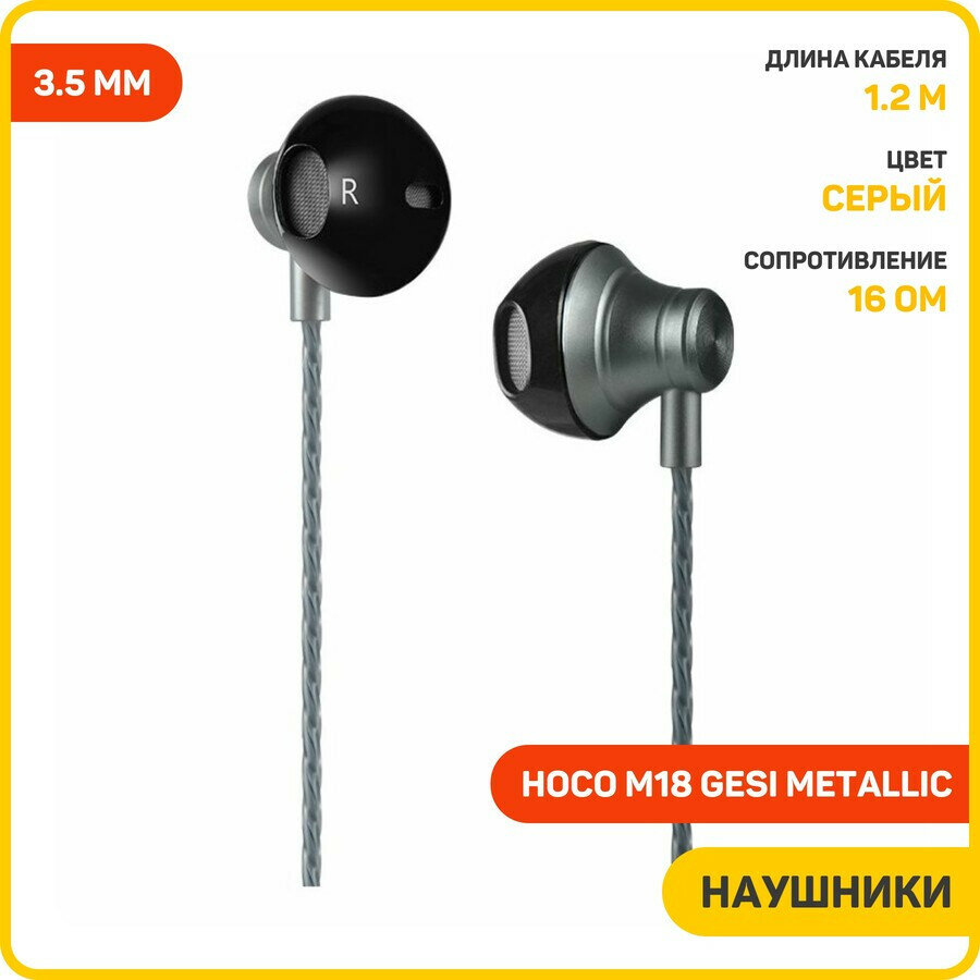 Наушники Hoco M18 Gesi Metallic (3.5 мм), серый