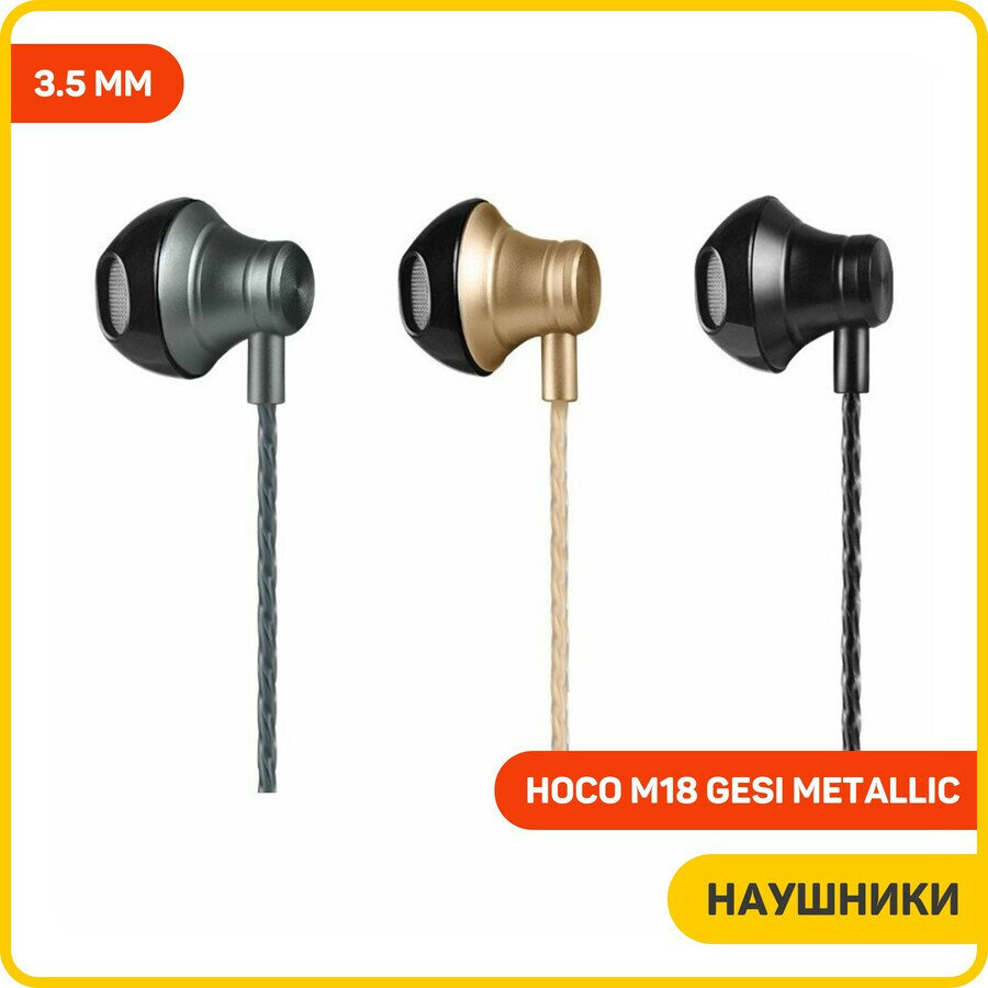 Наушники HOCO M18 Gesi Metallic, Jack 3.5mm, 1.2 м, черный, контроллер с микрофоном