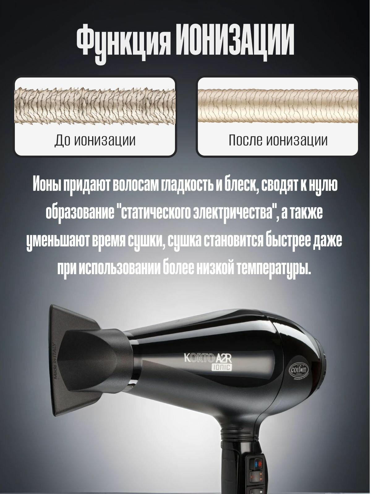СохранитьФен для волос профессиональный с ионизацией COIFIN Korto A2 KA2R серия KA2, тип KTkaaRi 230V 2400W черный интересное: