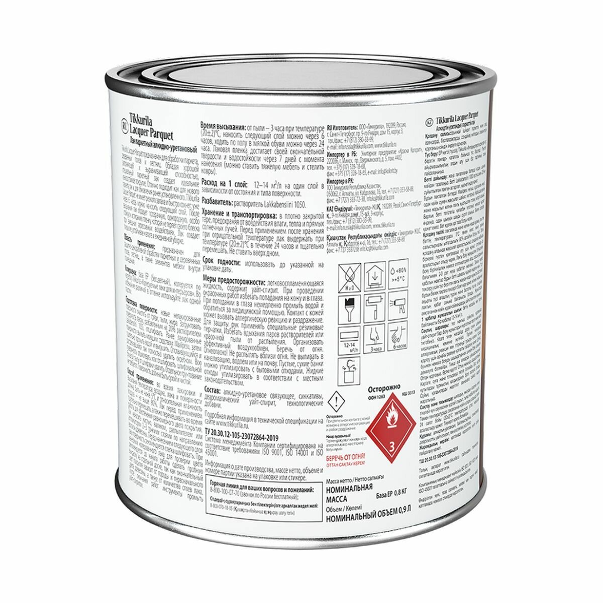 Лак паркетный глянцевый Lacquer Parquet (Лакер Паркет) TIKKURILA 0,9 л бесцветный (база EP)