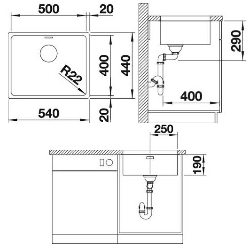 Кухонная мойка Blanco ANDANO 500-U, нержавеющая сталь