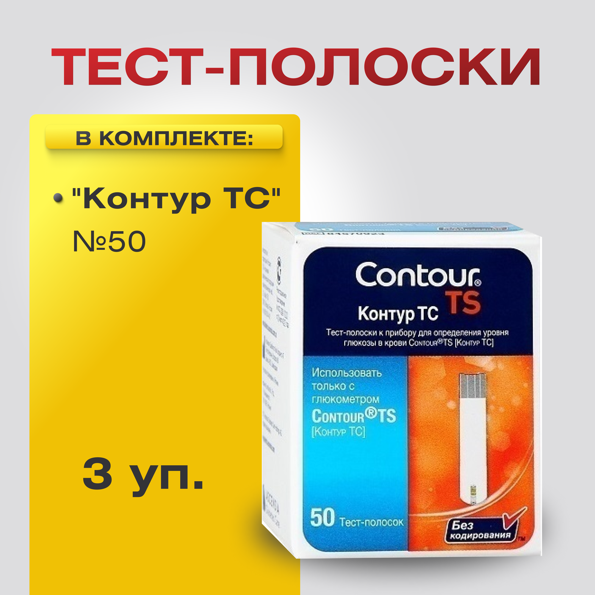 Купить Тест-полоски для глюкометров Контур ТС (Contour TS), 3 упаковки по 50 штук, 31.12.2024
