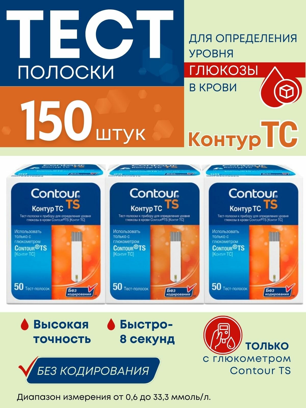 Тест-полоски Контур ТС (Сontour TS) № 150 (30.01.2025)