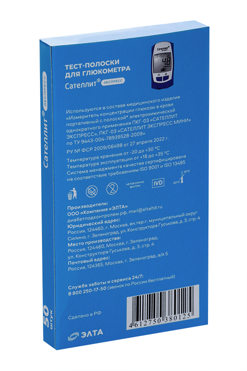 Тест-полоски для определения глюкозы в крови к глюкометру Сателлит Экспресс, 50 штук