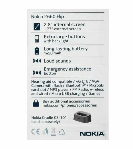Мобильный телефон Nokia 2660 2.8", 1450 мА·ч, черный (1GF011PPA1A01)