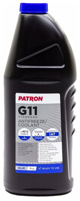 Купить PATRON PCF3001 Антифриз 1кг брутто (0.87л) синий готовый: G11, TL 774-C, G011A8CA1, 83512355290, N600690, MAN 324 NF, MB 325.0, B0400240, 6901599, 1286083