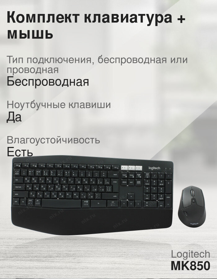 Комплект клавиатура + мышь Logitech MK850 Performance, русская оригинальная раскладка