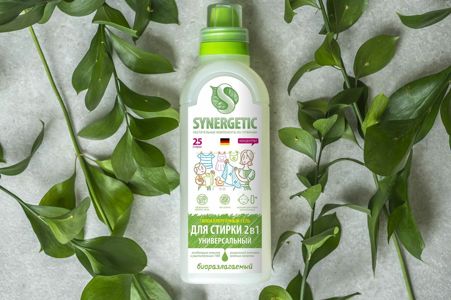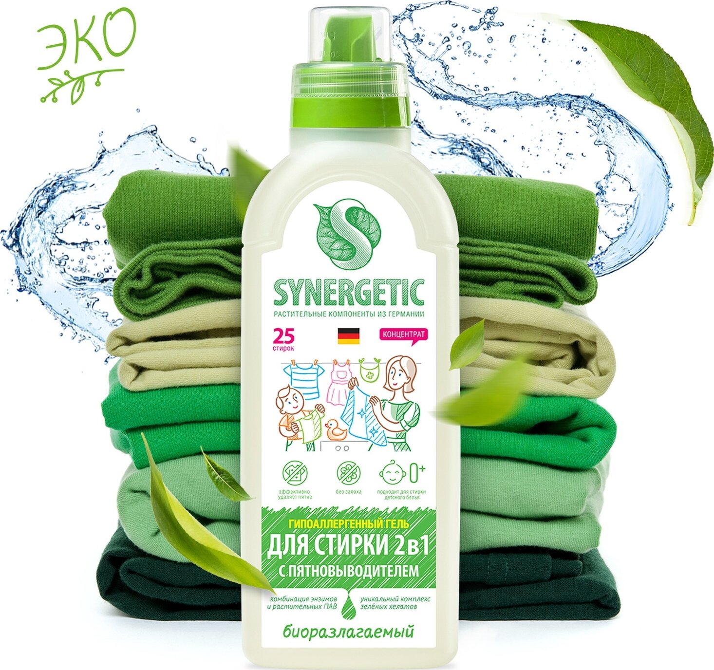 Купить Гель для стирки 2в1 SYNERGETIC c пятновыводителем 0,75 л 25 стирок