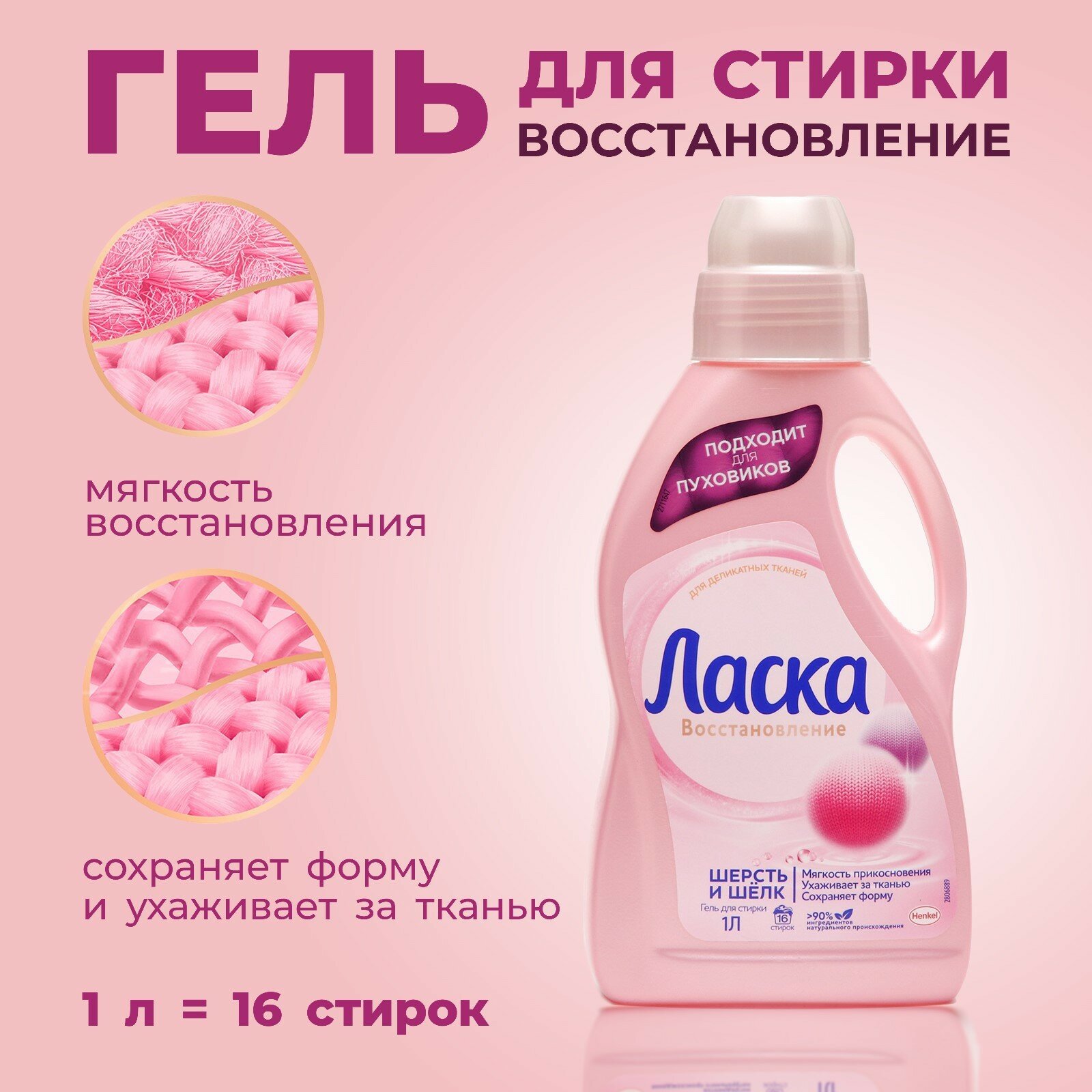 Гель для стирки Ласка Восстановление Шерсть и Шёлк для деликатных тканей, 1 л (16 стирок), жидкое средство для стирки