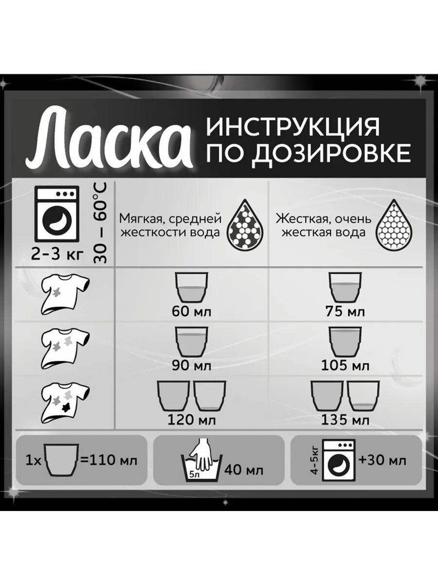 Купить Упаковка 2 шт. Гель для стирки 3 л ласка "Сияние черного", концентрат, 2462937