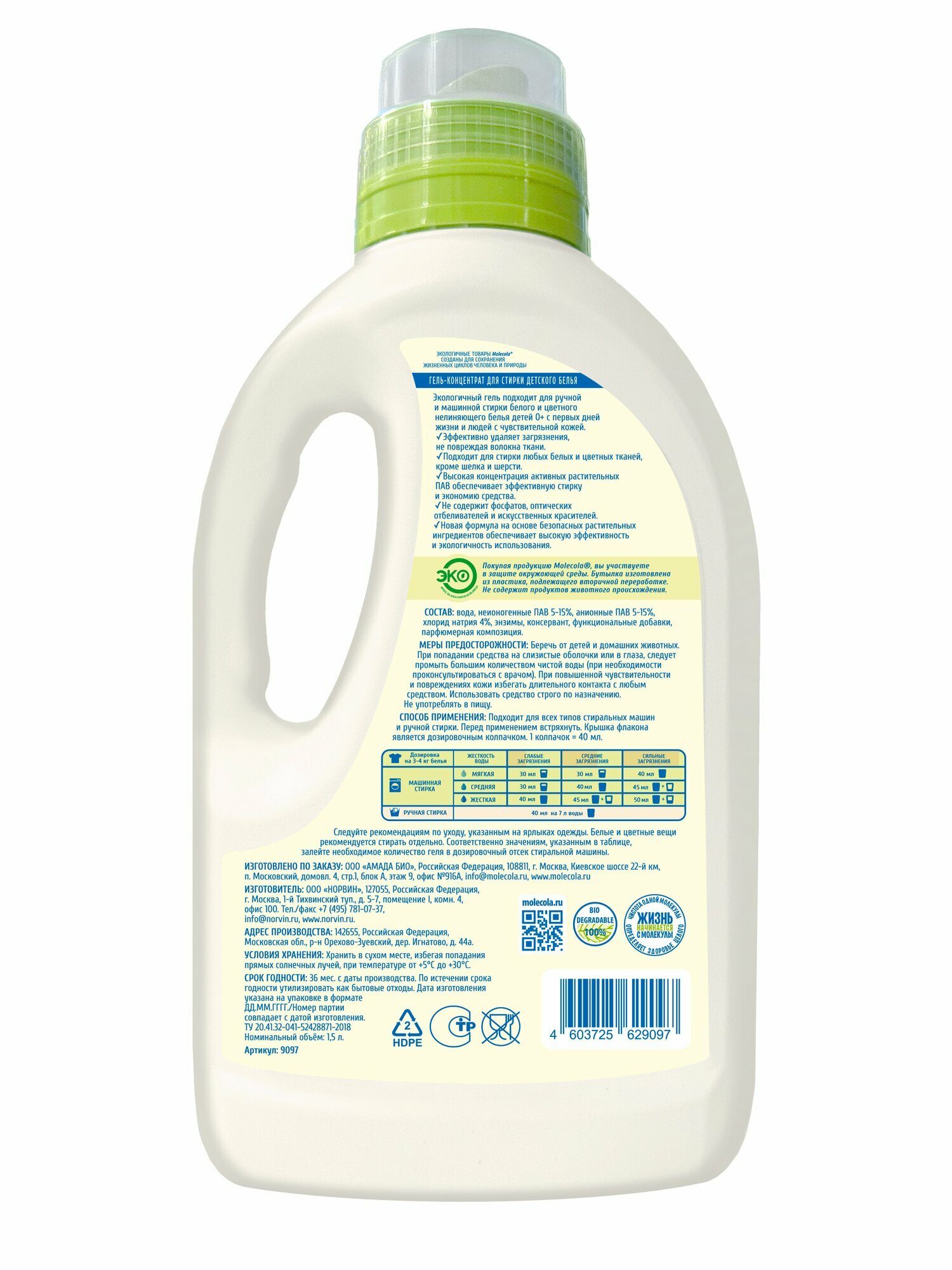 Экологичный гель для стирки детского белья MOLECOLA 1,5 л