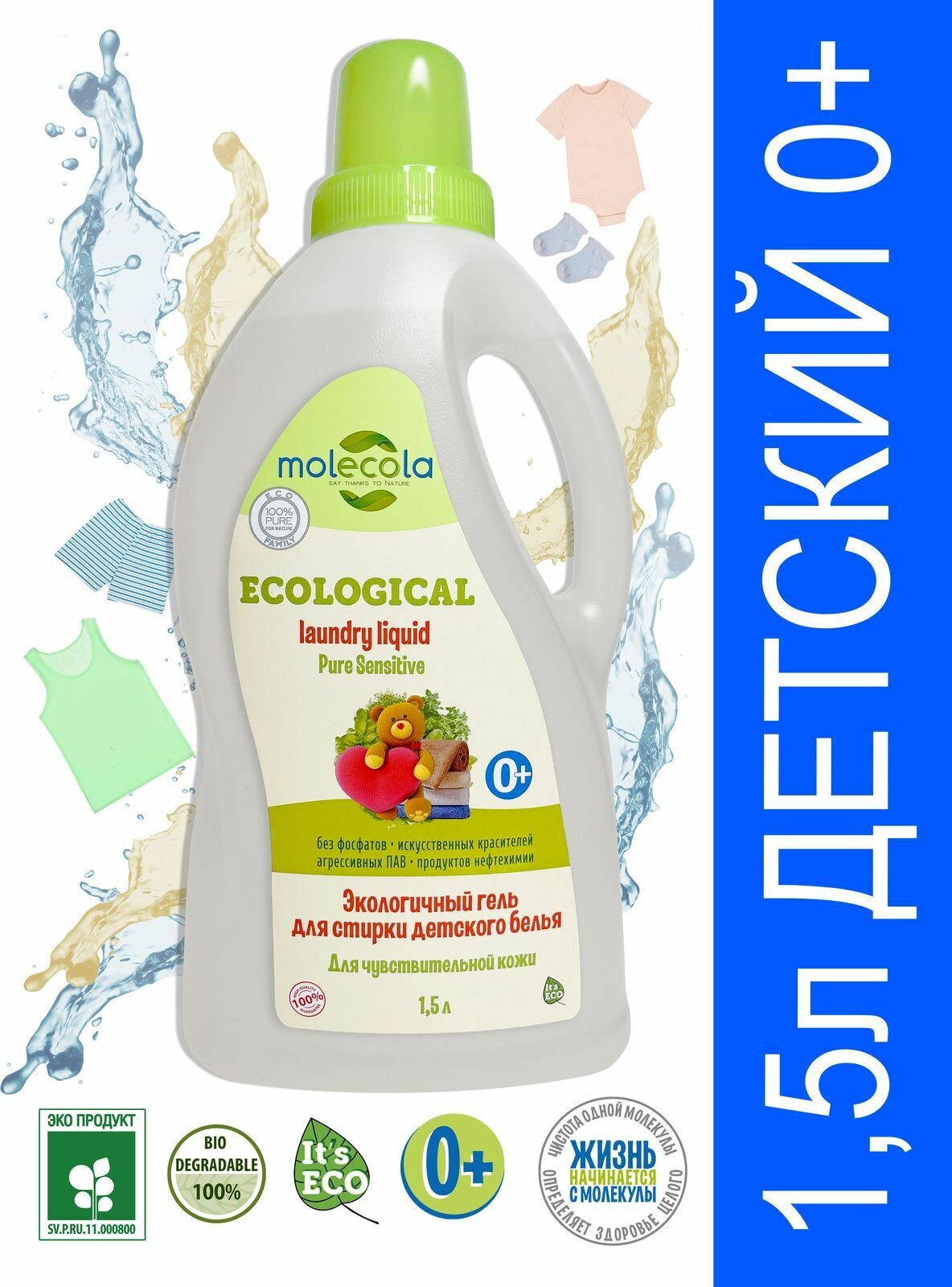 MOLECOLA "Pure Sensitive экологичный гель д/стирки детского белья и для людей с чувс-ной кожей.1,5л