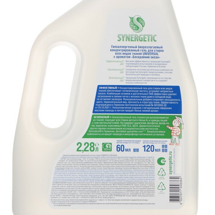 СохранитьГель для стирки SYNERGETIC UNIVERSAL "Бескрайний океан", 2,28 л (38 стирок) интересное:
