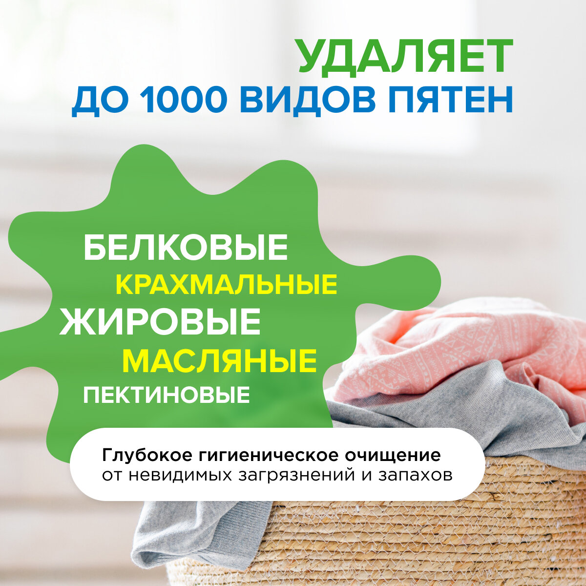 | Минусы: | Не отстирывает сложные пятна ( как заявлено в инструкции), приходится использовать пятновыводитель перед стиркой |