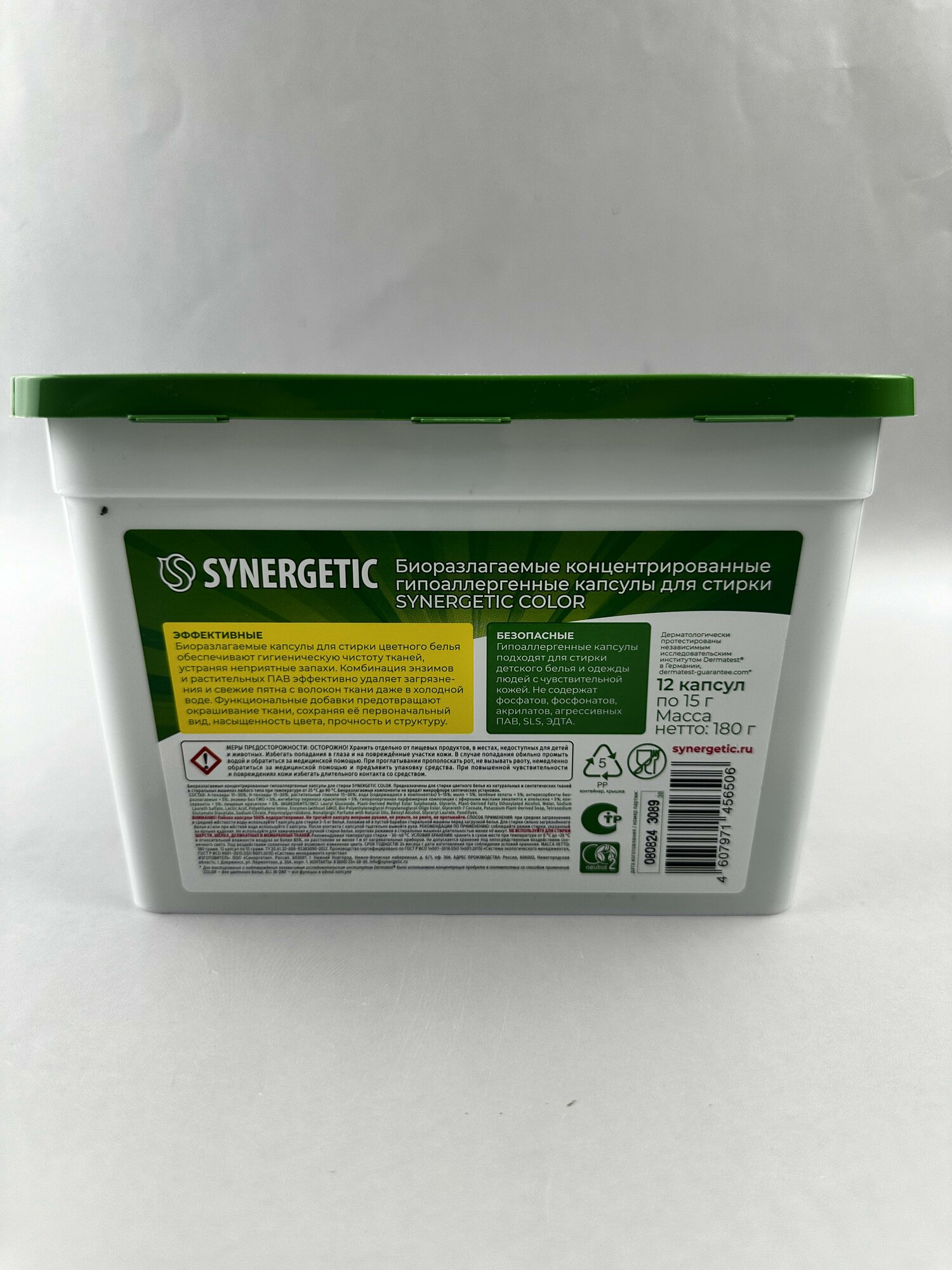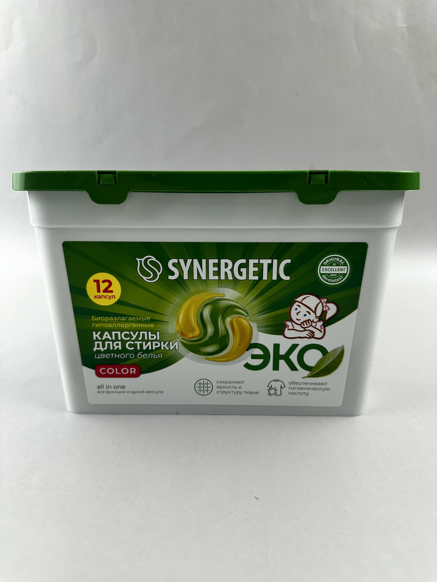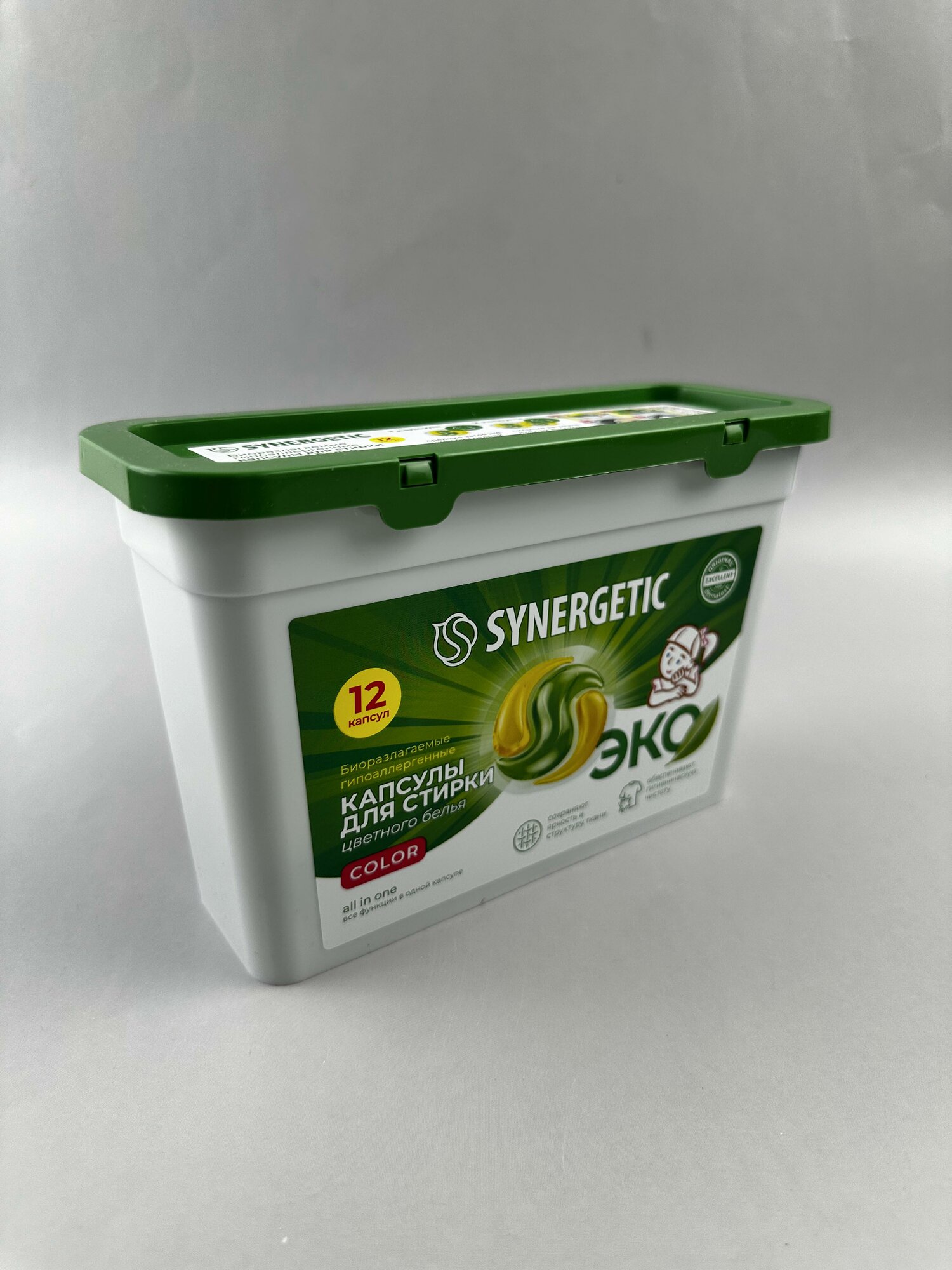 Капсулы для стирки Synergetic COLOR для цветного белья, биоразлагаемые, гипоаллергенные, 12 шт