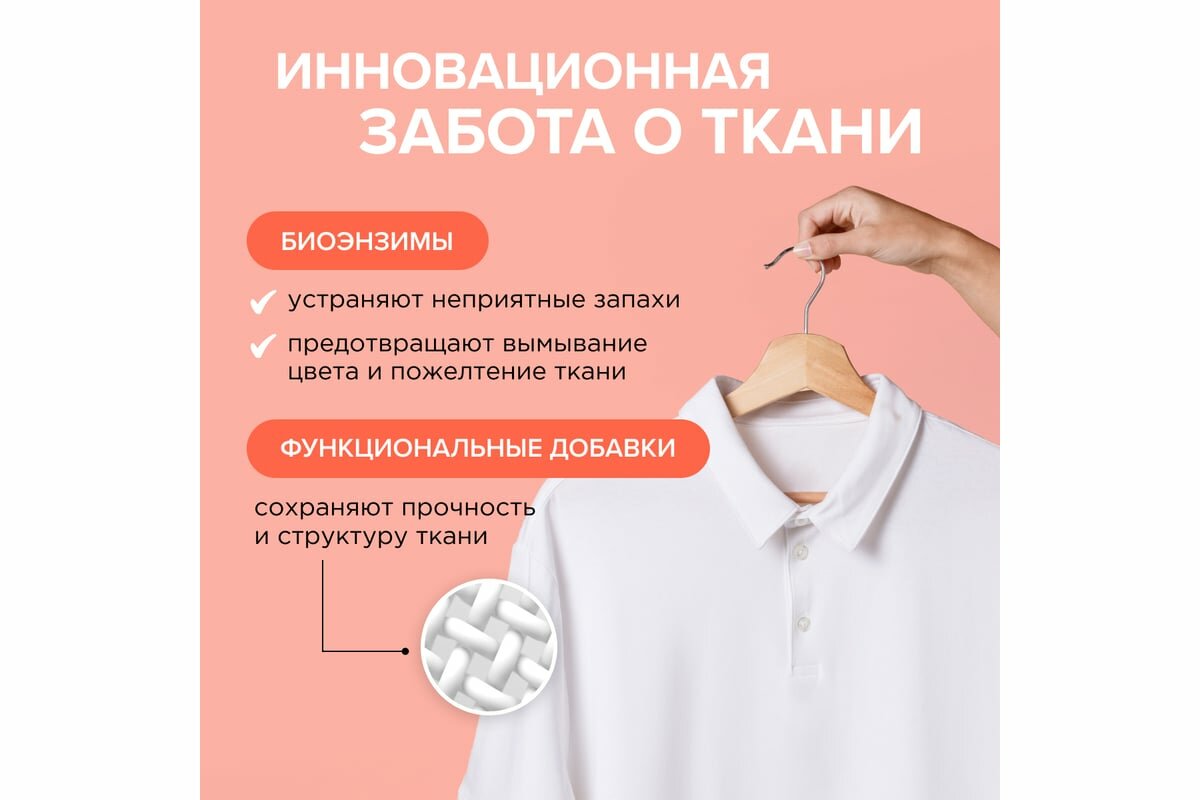 | Плюсы: | Хорошо отстирывает. Приятный запах, вещи легко гладится после стирки. Майки вообще не глажу, они за 5 минут на теле распрямляются |