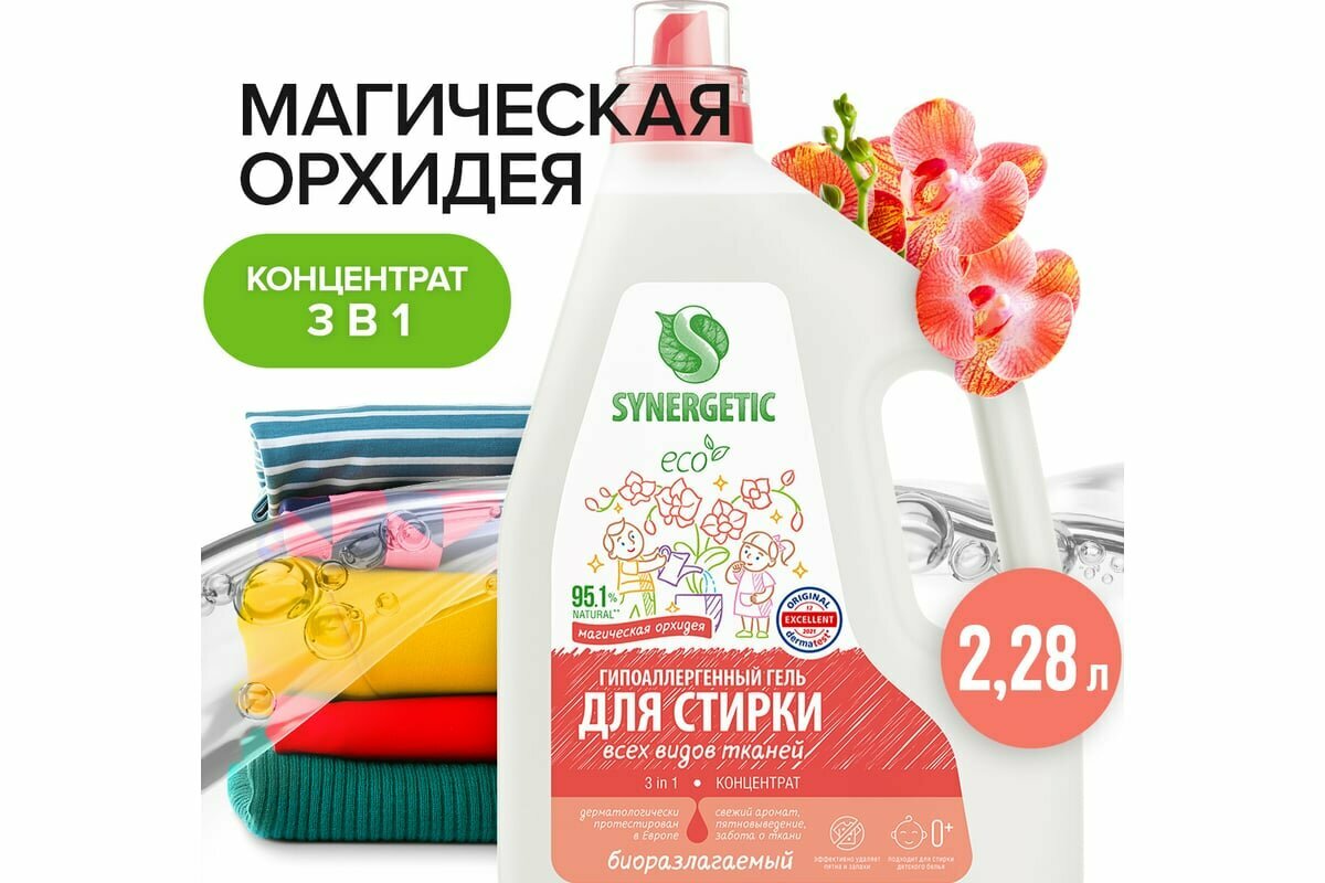 СохранитьГель для стирки Synergetic "Магическая орхидея", 3 в 1, 2,28 л, 38 стирок интересное: