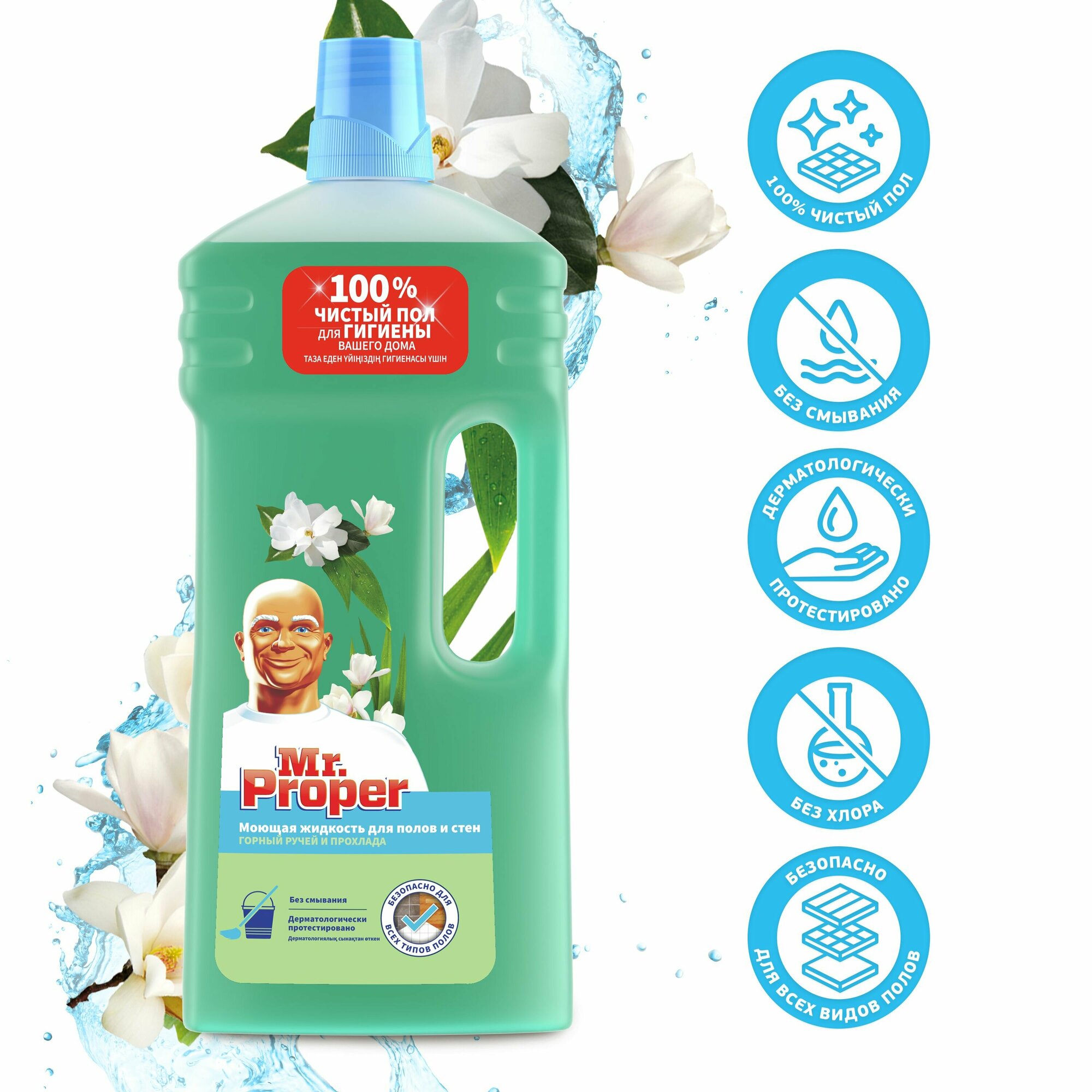 Средство для мытья пола и стен Mr. Proper 1 л, "Горный ручей и прохлада" (MP-81519421)