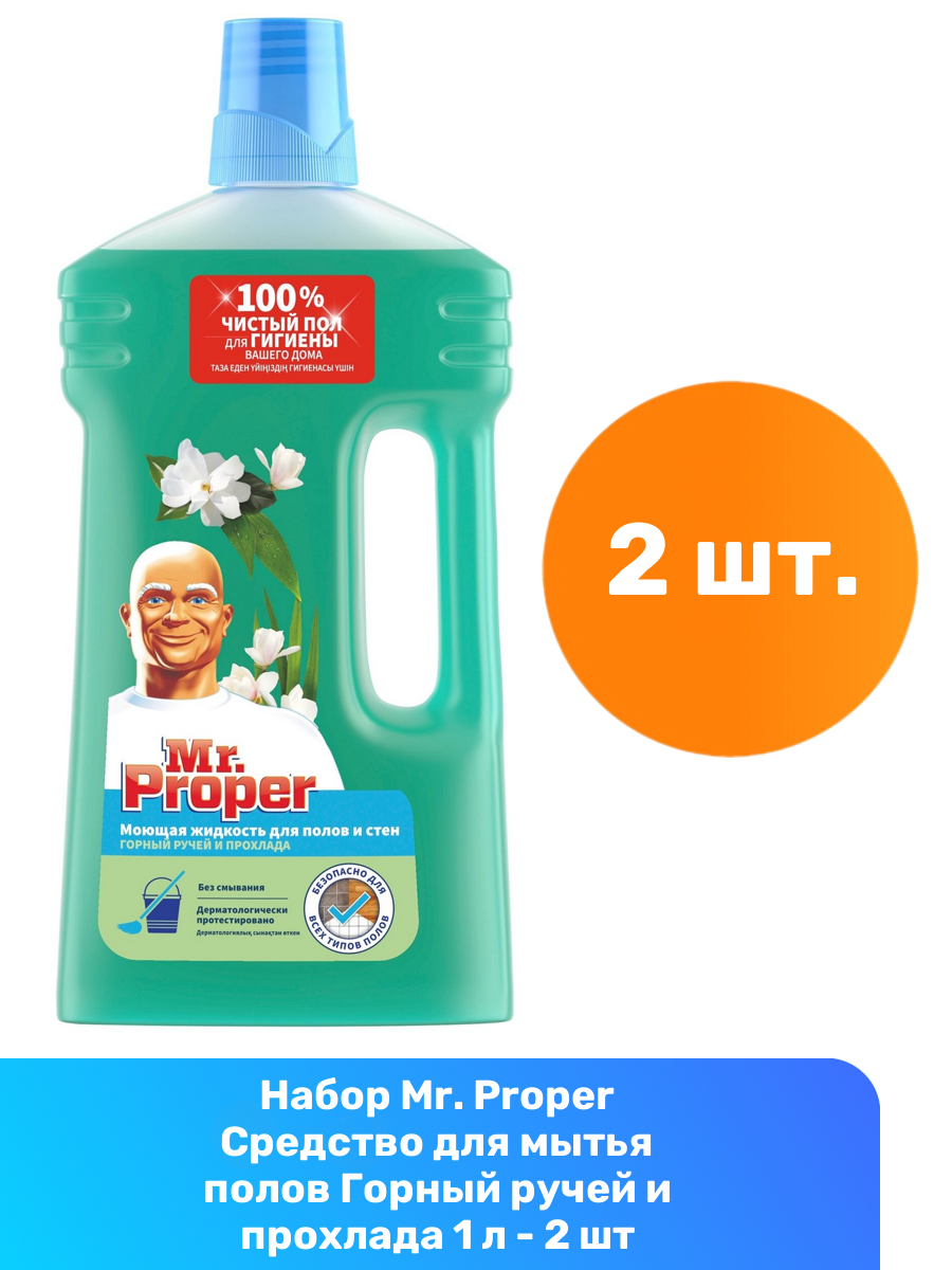 Купить Mr. Proper Средство для мытья полов Горный ручей и прохлада 1 л - 2 шт