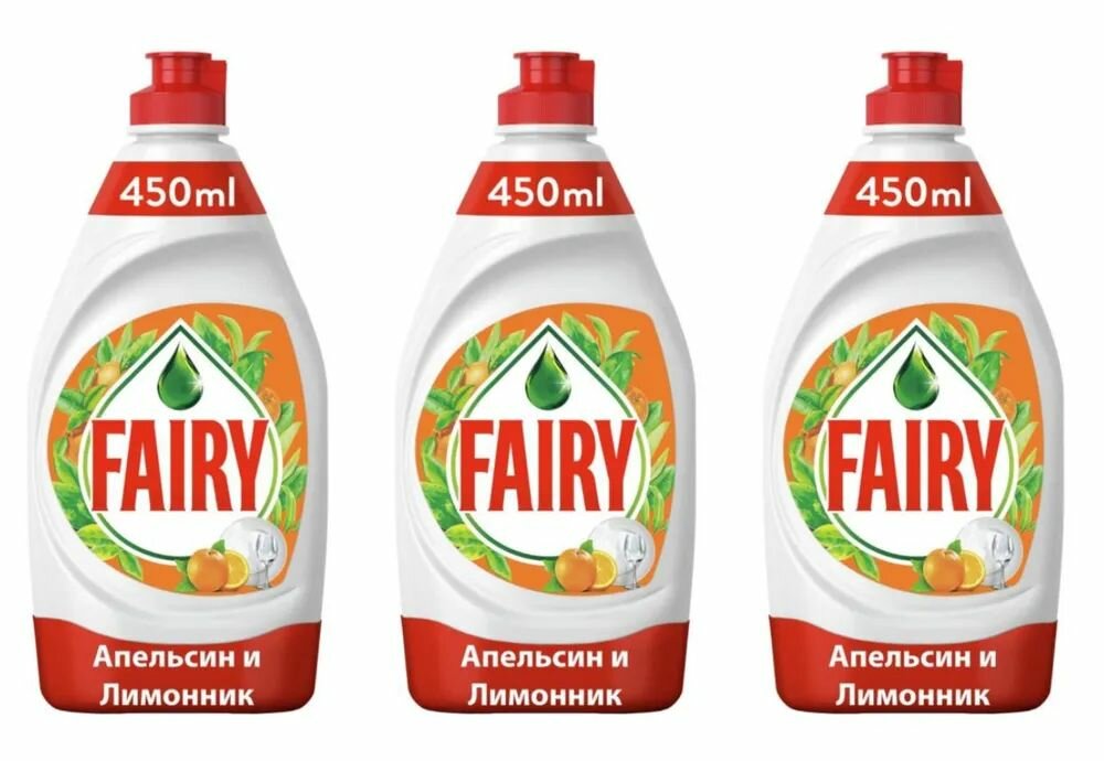 Купить Fairy средство для мытья посуды апельсин и лимонник, 450 мл, 3 штуки в комплекте.