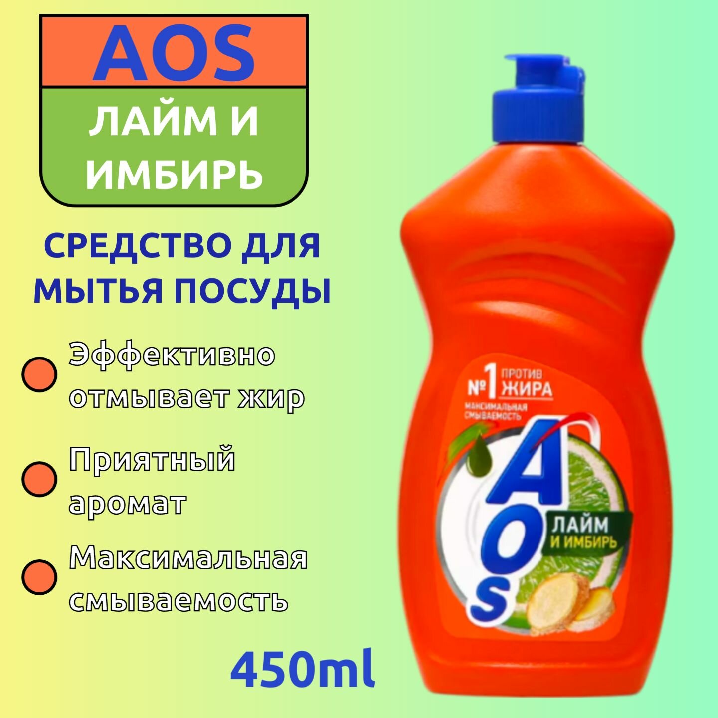 Купить AOS гель для посуды Лайм и Имбирь 450мл