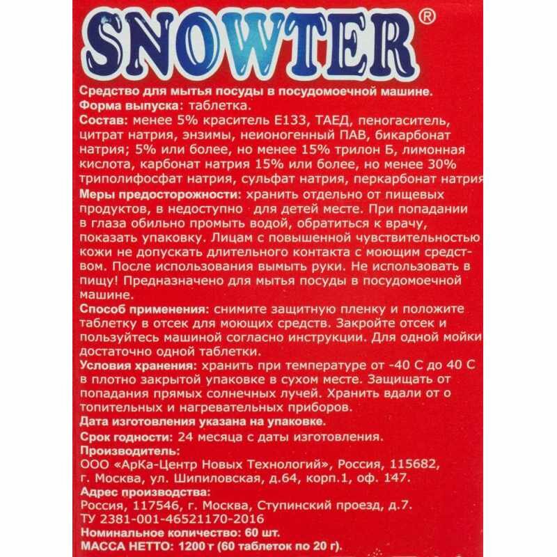 Snowter Таблетки для посудомоечных машин, 60шт/уп.