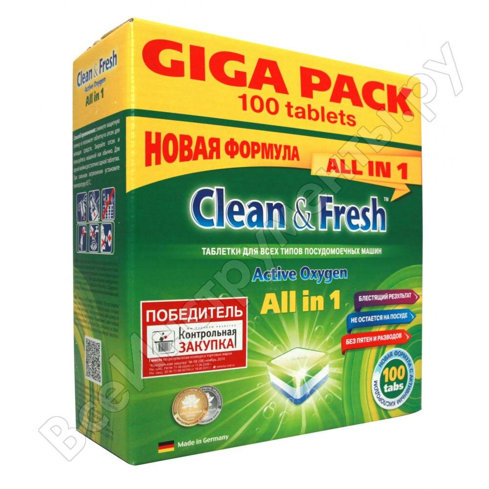 Купить Таблетки для посудомоечных машин 100 шт. CLEAN&FRESH "ALL-in-1", УТ000000044, 1шт в компл.