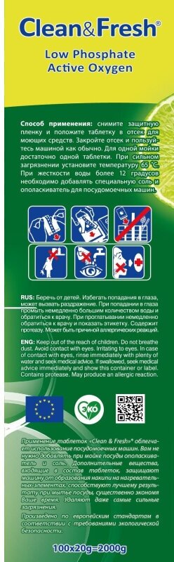 СохранитьТаблетки для посудомоечных машин 100 шт. CLEAN&FRESH "ALL-in-1", УТ000000044, 1шт в компл. интересное: