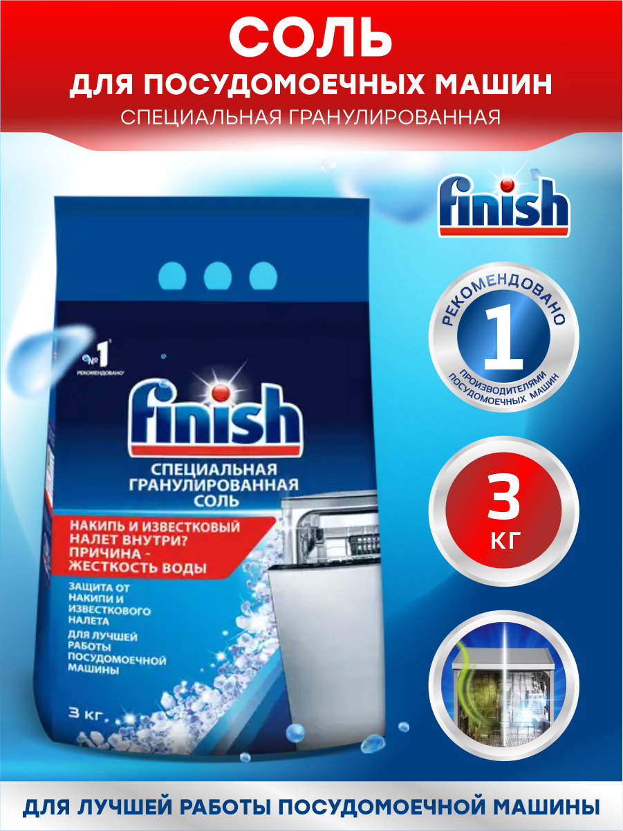 Набор FINISH Соль гранулированная 3 кг. + Ополаскиватель Блеск и Сушка 400 мл.