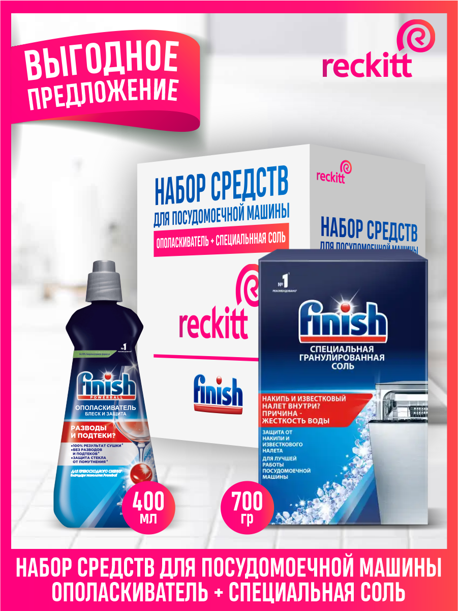Купить Набор FINISH для ПММ Соль 700 гр. + Ополаскиватель Блеск и Сушка 400 мл.