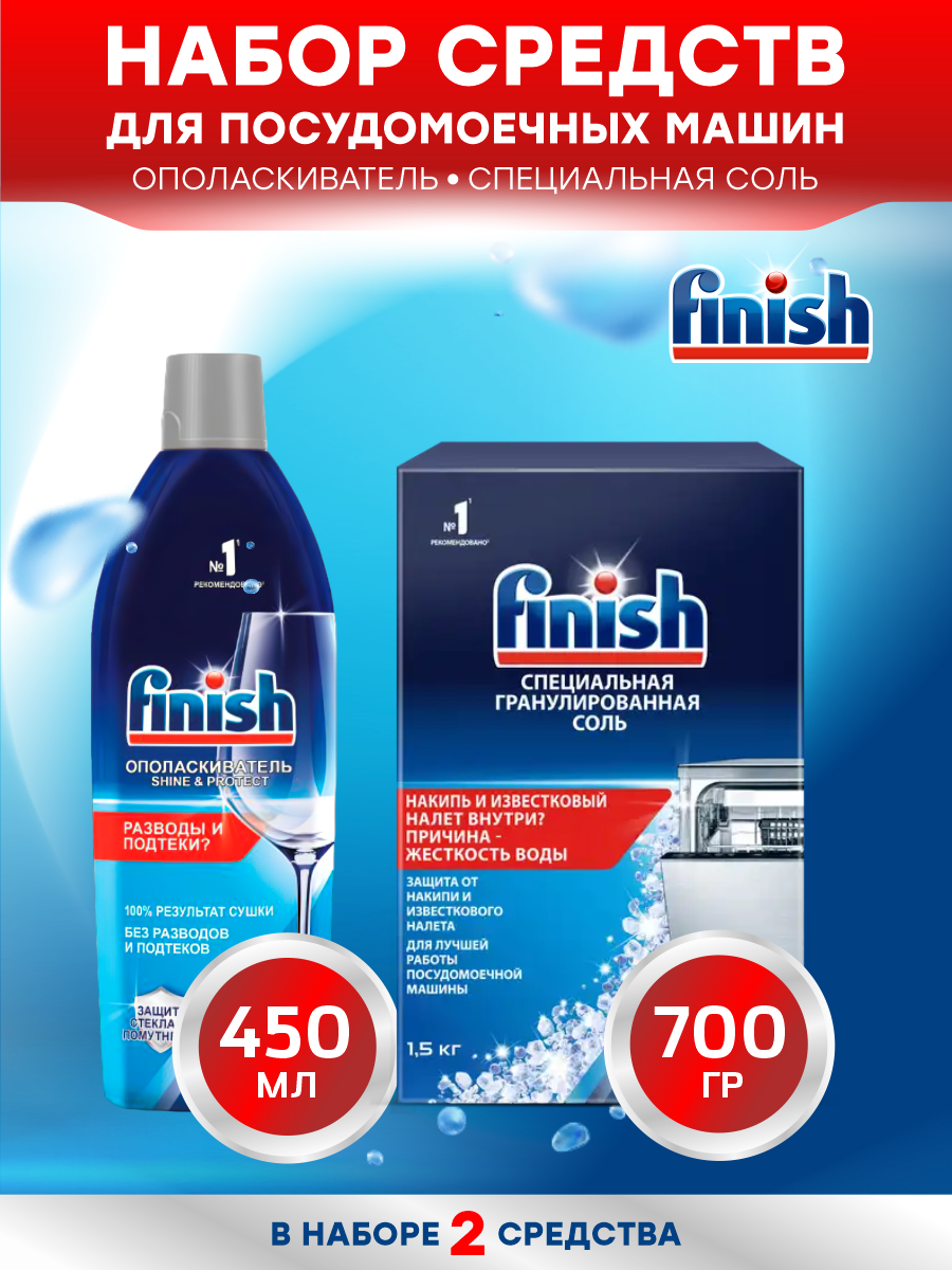 Набор финиш для посудомоечной машины Соль 700 гр. + Ополаскиватель 800 мл.