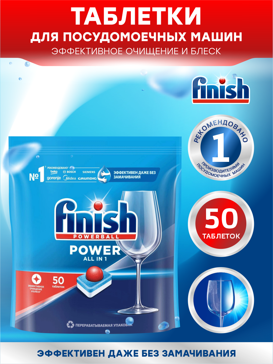 Таблетки для посудомоечных машин Finish Power All in 1, 50 шт.