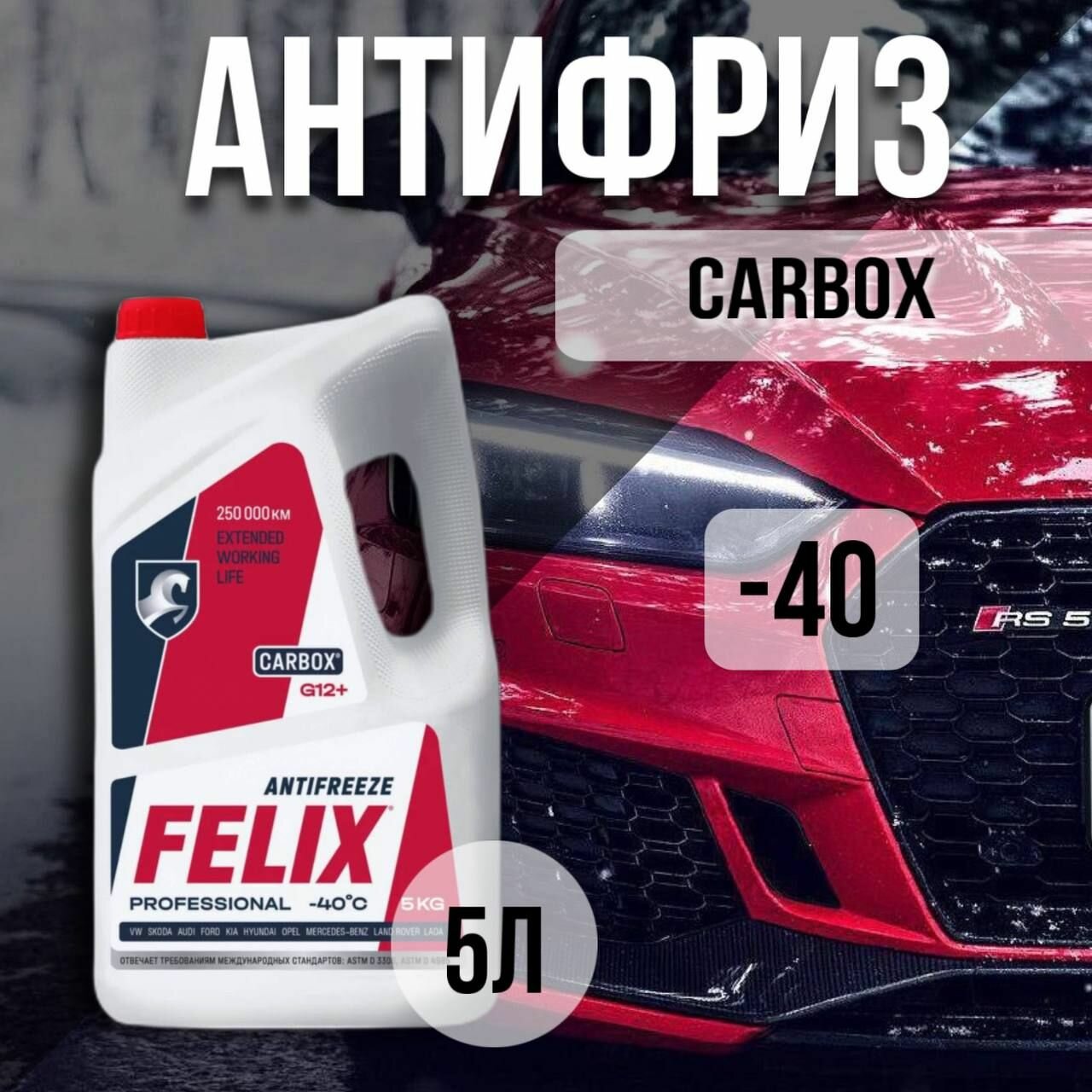 Антифриз FELIX Carbox, красный, -40С, G12+, 5 кг ; Абу-Даби - Ограниченная Серия