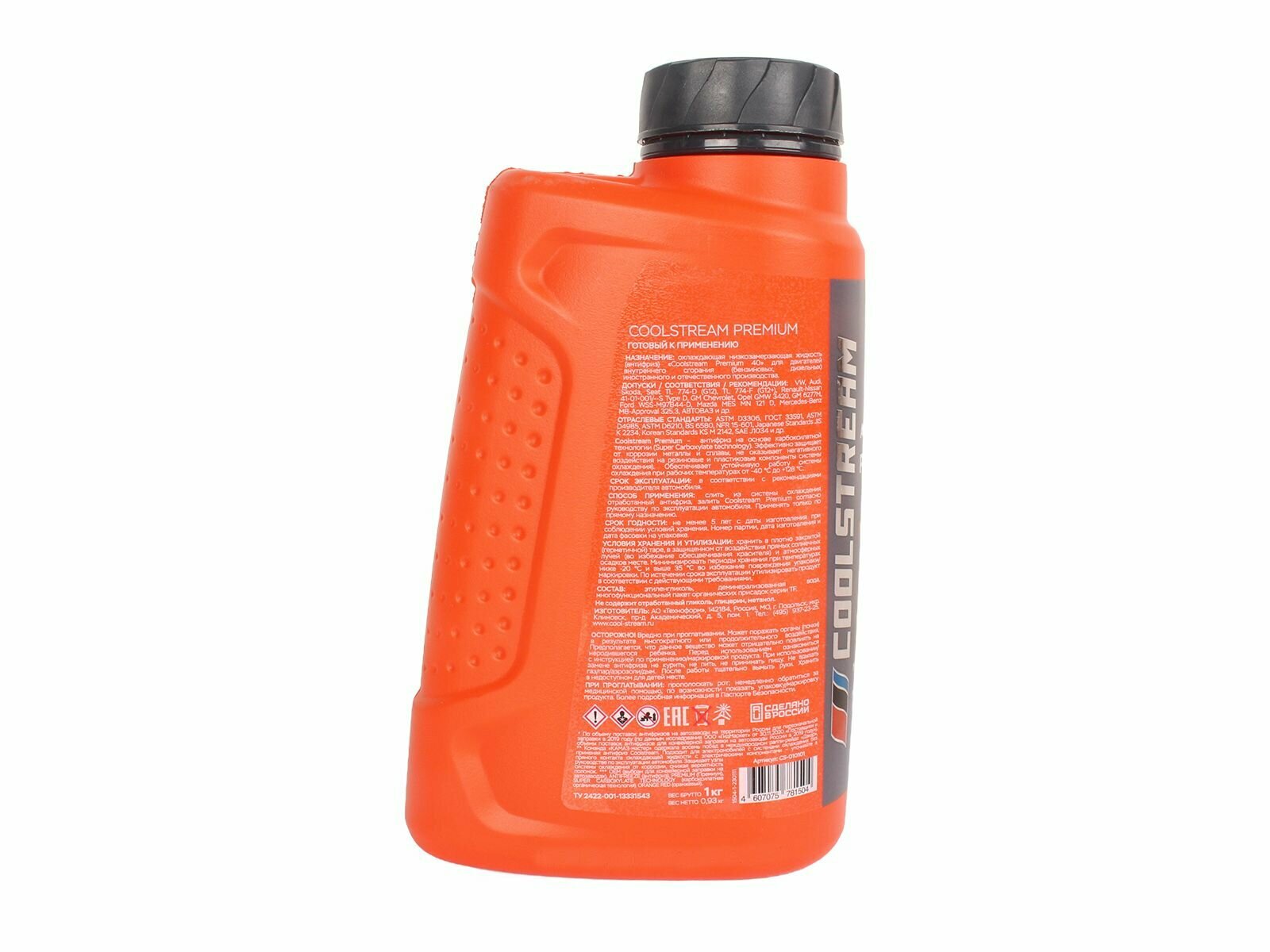 COOLSTREAM CS010101 Охаждающая жидкость (антифриз) CoolStream Premium 40 канистра 1 кг,оранжевый