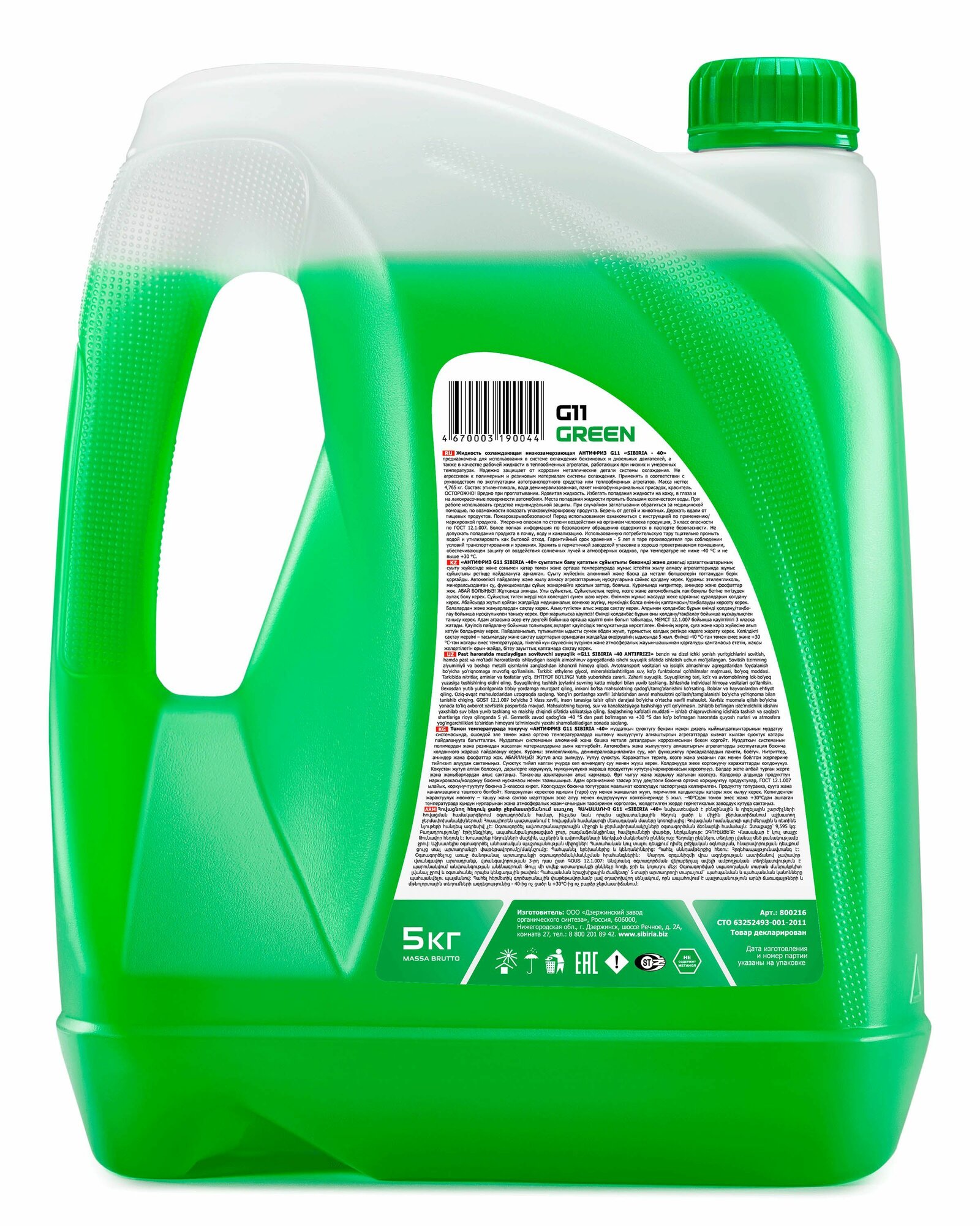 Антифриз зеленый SIBIRIA G-11 5л