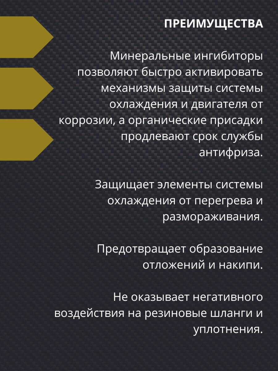 | Плюсы: | Спустя пол года использования слил по техническим причинам. Антифриз все такой же чистый |