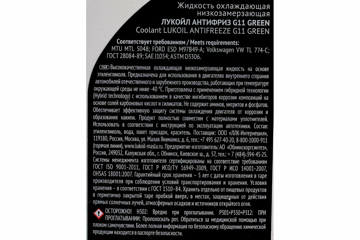 Жидкость охлаждающая LUKOIL зеленый G11 (5L) 3126867