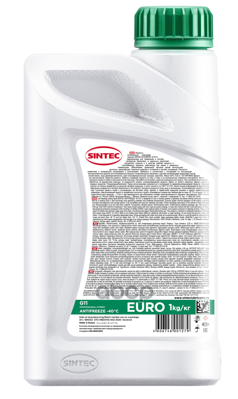 Антифриз зеленый -40C 1кг G11 Euro, 990553, SINTEC