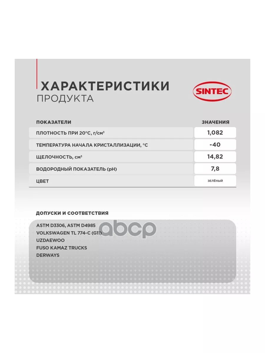 Ниже Вы можете прочитать отзывы на Антифриз G11 SINTEC EURO готовый ГАЗ 1кг -40°С зеленый (заме, ознакомится с подробными характеристиками, посмотреть интересные обзоры и фотографии на Антифриз G11 SINTEC EURO готовый ГАЗ 1кг -40°С зеленый (заме.