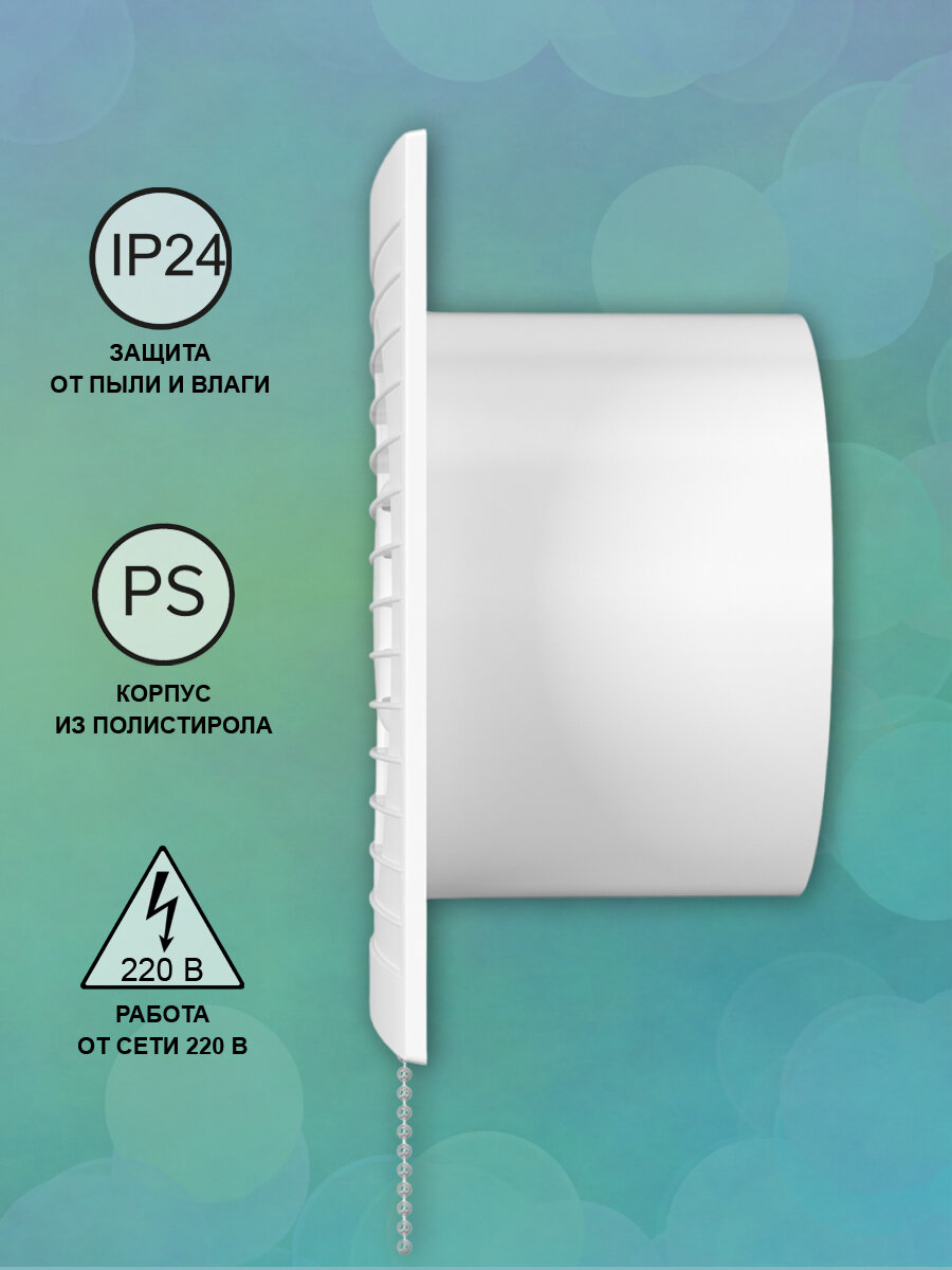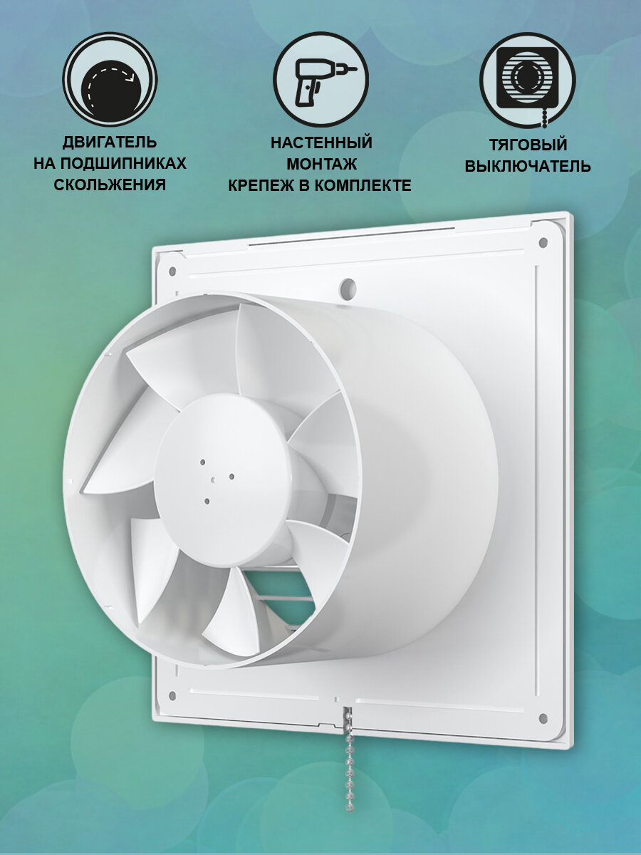 Вентилятор вытяжной осевой AURAMAX A 5-02, с тяговым выключателем, тонкая лицевая панель, D 125 мм, белый
