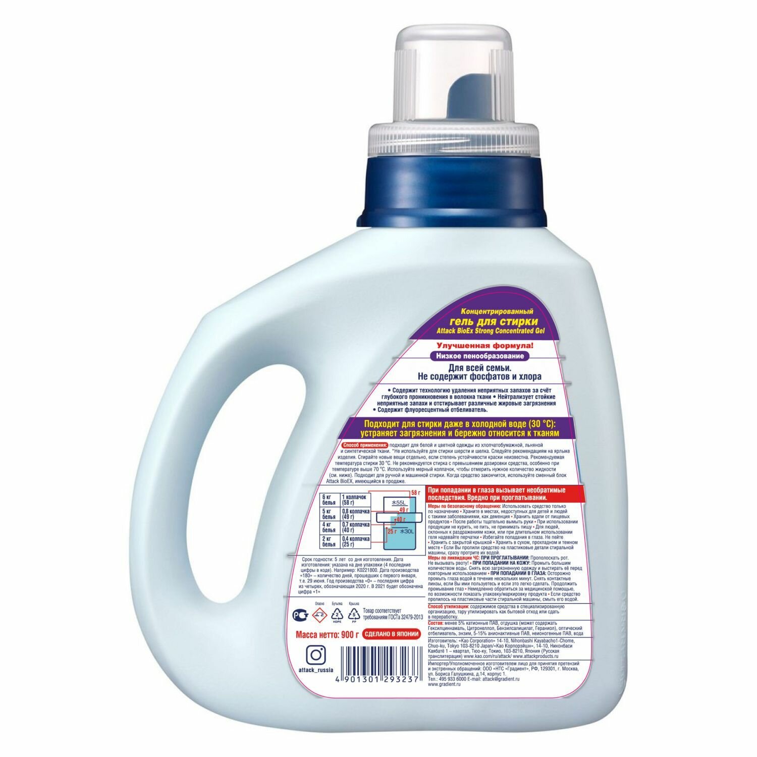 Жидкое средство для стирки Attack BioEx Strong концентрат, против неприятных запахов 900 г флакон интересное: