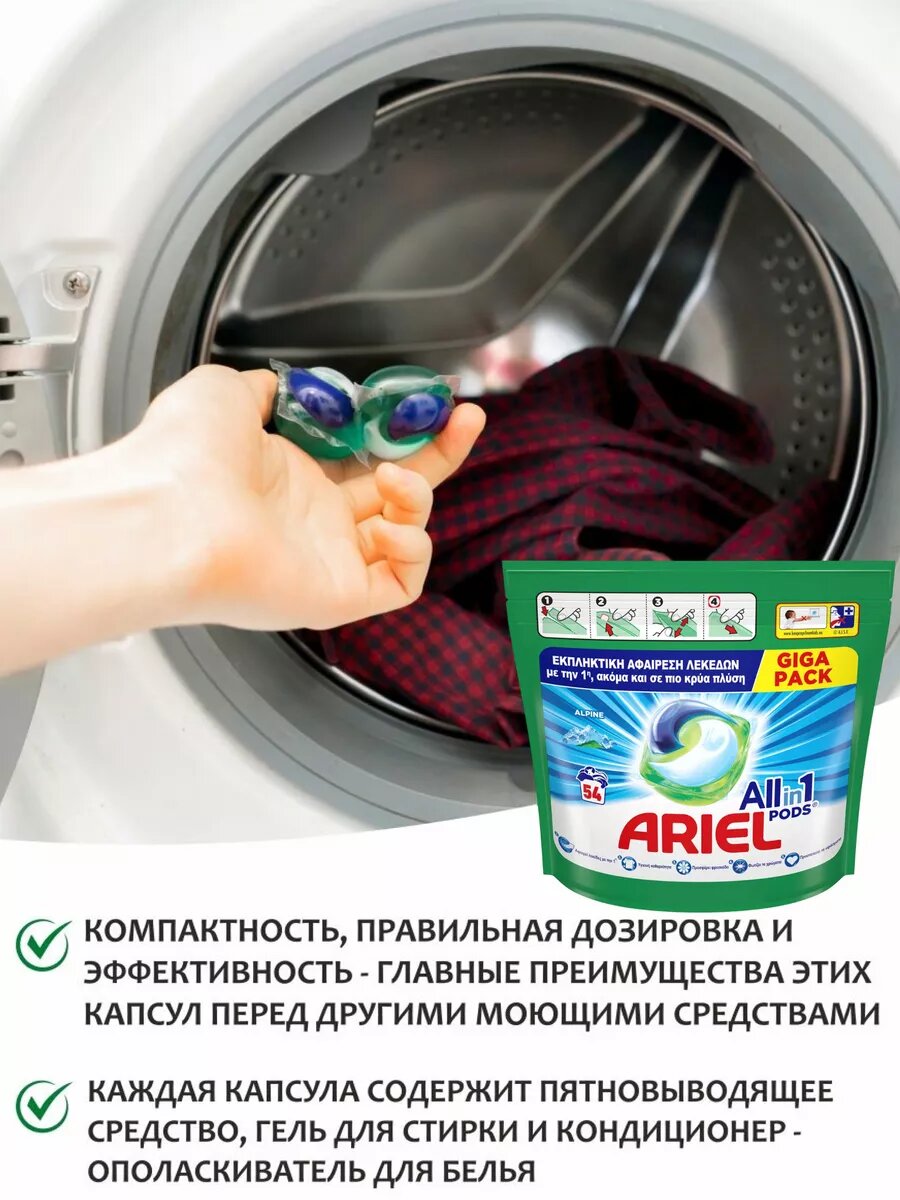 Ниже Вы можете прочитать отзывы на Капсулы для стирки Ariel 54 шт, для цветного и белого, очищение и ароматизация, удаление пятен и загрязнений, универсальные, ознакомится с подробными характеристиками, посмотреть интересные обзоры и фотографии на Капсулы для стирки Ariel 54 шт, для цветного и белого, очищение и ароматизация, удаление пятен и загрязнений, универсальные.